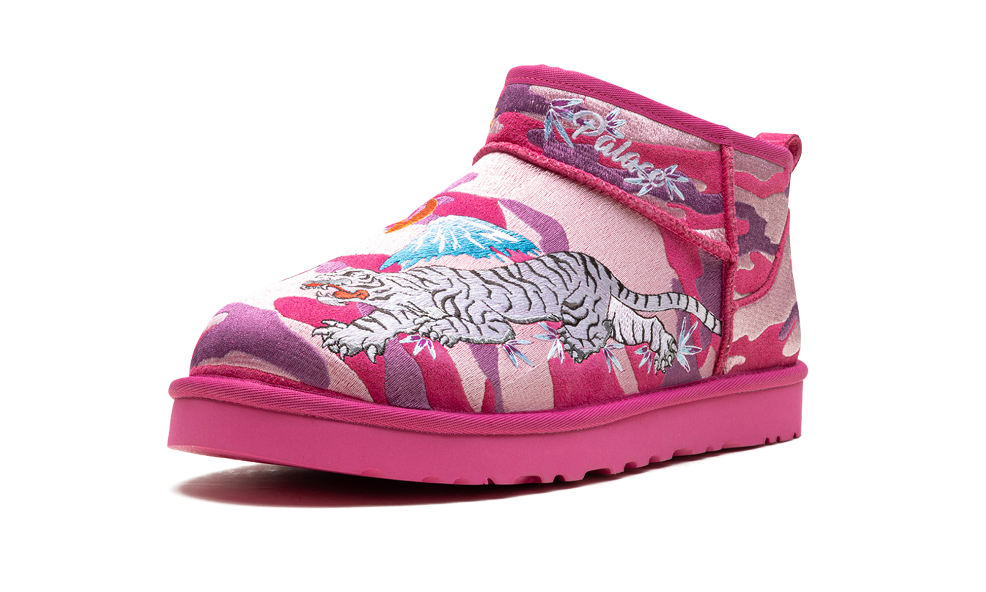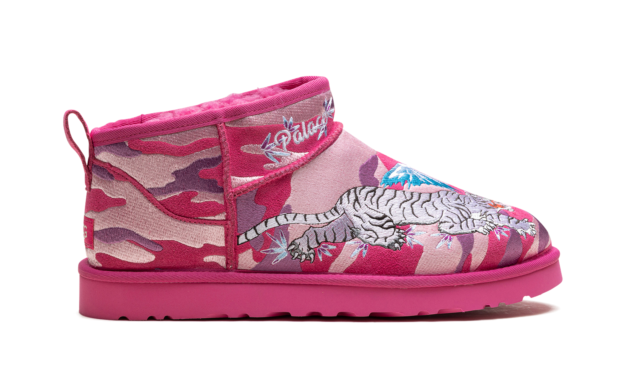 Make a bold, graphic statement this season with the Mini Boot 'Palace - Pink Camo'. This collaboration delivers UGG’s ultra-cozy mini boot silhouette in a distinctive pink camouflage pattern that stands out instantly. The plush wool lining guarantees classic comfort and warmth, while the vibrant design and durable outsole ensure street-ready wearability. It’s the ultimate statement boot for men looking to fuse comfort with high-impact street style.