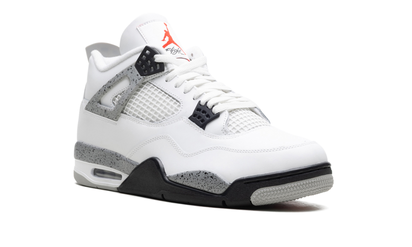 The Air Jordan 4 "White Cement 2025" marks the return of one of the most iconic colorways of Michael Jordan's fourth signature shoe. The "White Cement" AJ4 is one of the OG Jordan 4 colorways and the 2025 edition adheres closely to the original design. The famed speckled grey pattern appears on the Air Jordan 4's lacelock wings, midsole, and heel tab. The patch on the tongue features the "Flight" logo in black underneath a red Jumpman. And the "Nike Air" branding that true Jordan fans appreciate appears on the heel.